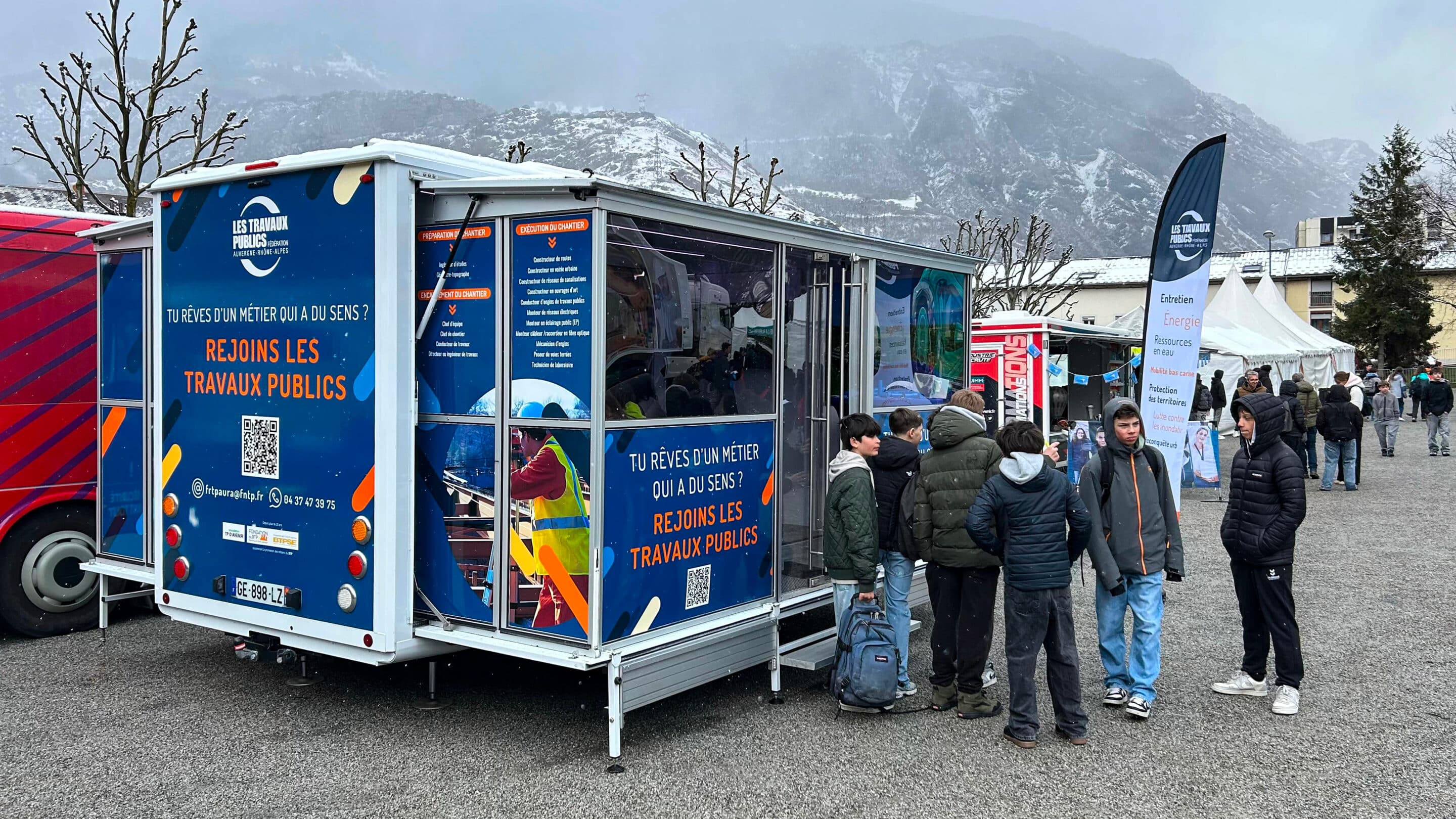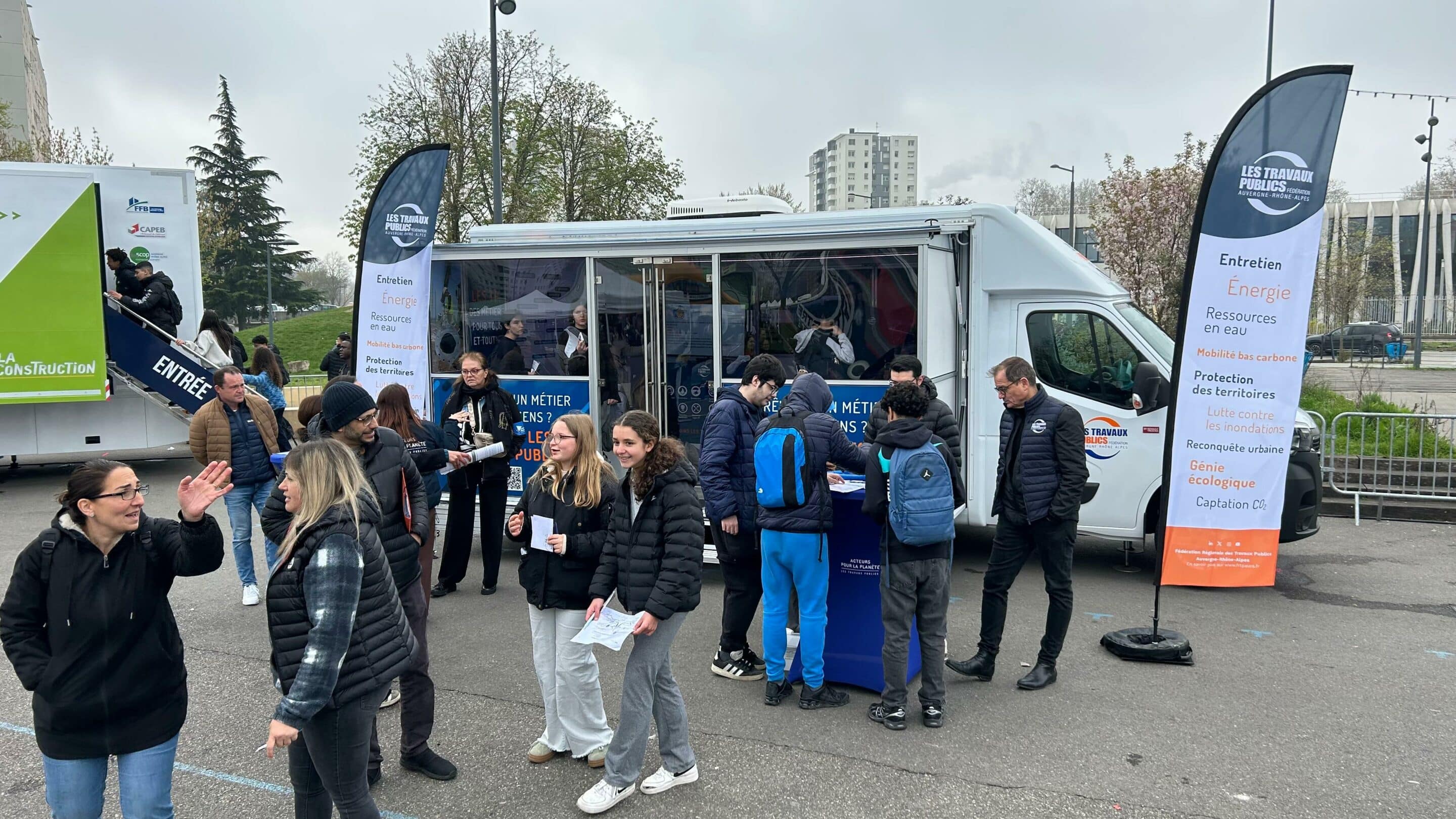 La Fédération Nationale des Travaux Publics (Federation Nationale des Travaux Publics) ha viajado durante varias semanas por la región Auvernia-Rhônes-Alpes a bordo del Doublex.