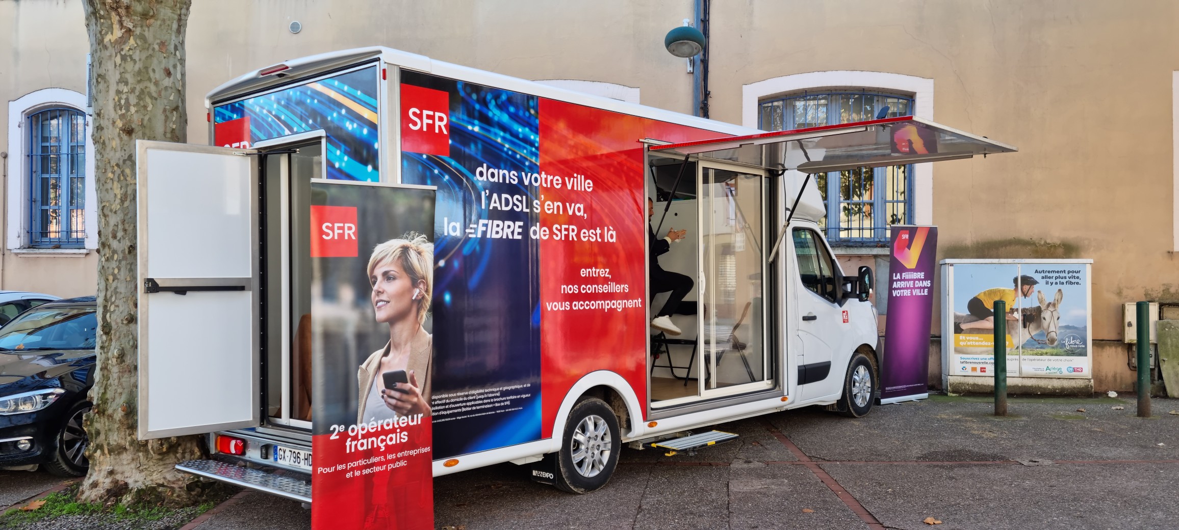 Un VANEXPO COOLGLASS s’installe en Ariège avec SFR pour annoncer une excellente nouvelle : l’arrivée de la fibre optique sur le territoire.