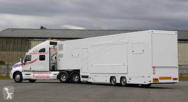 Vends semi-remorque évènementielle podium CHORUS, 03/2013, carrosserie LYNTON, une extension hydraulique droite, un podium à gauche, kitchenette/bureau, climatisation réversible, stabilisation/mise à niveau au moyen de quatre béquilles hydrauliques, temps de mise en place rapide (20 mn), groupe électrogène embarqué 20 Kva, ascenseur PMR, suspension pneumatique,